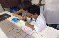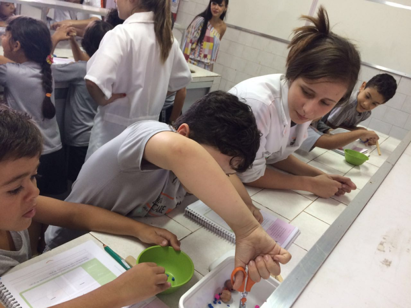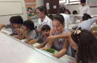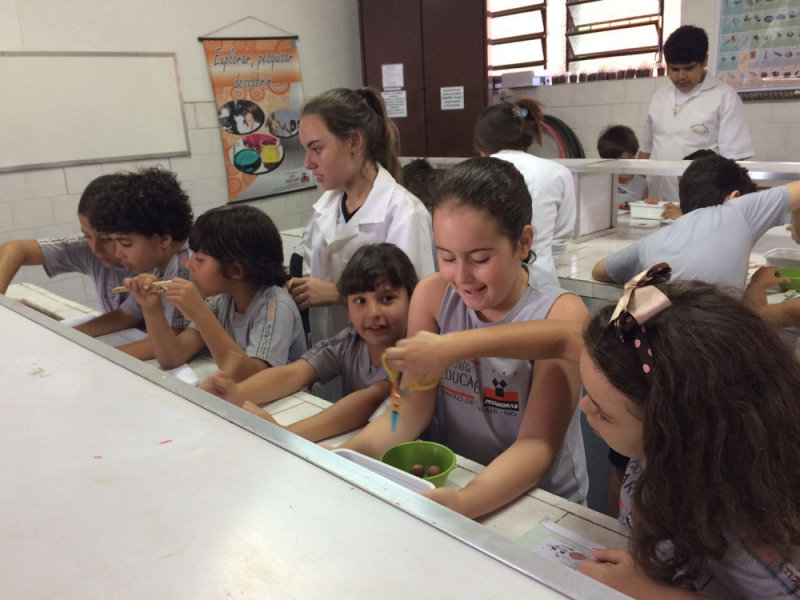 Aula prática com a Professora Evelyn e alunos do 2º Ano do Ensino Fundamental relacionando os diferentes bicos do pássaros e contemplando a diversidade das espécies.