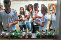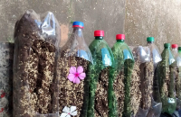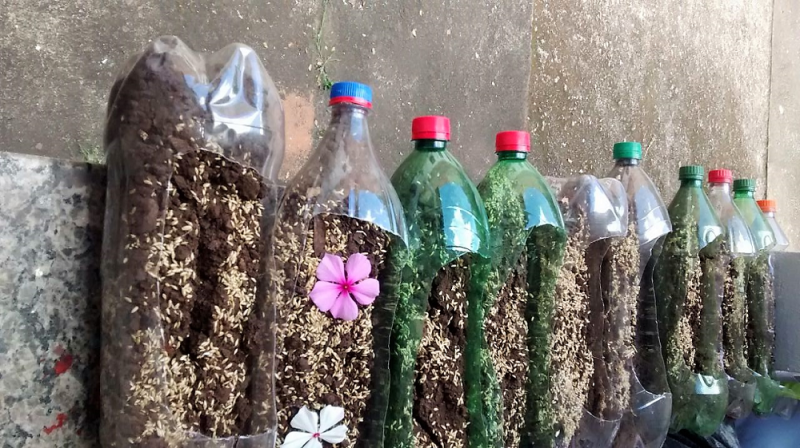 Aula prática contemplando a matéria sobre cobertura vegetal. Plantio de alpiste em pets e no período de 15 dias cuidaram e observaram seu crescimento. Foram destacados pontos importantes sobre a função da cobertura vegetal para o solo, a dormência das sementes, a importância e diferenças entre raízes.