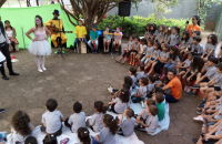 Uma peça de teatro, repleta de fantasia e acompanhada de muita música fez brilhar os olhinhos dos pequenos...