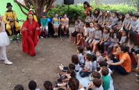 " O sumiço dos livros" marcou o início das atividades da Mostra de Arte, Literatura e Movimento 2016, já que hoje foram apresentados às turmas o livro que será trabalhado. Esses livros foram trazidos como presentes pelos personagens da peça