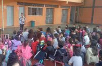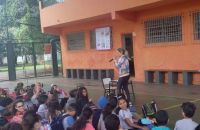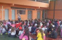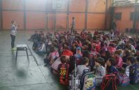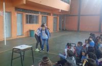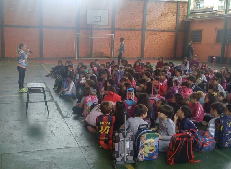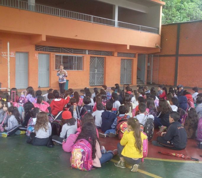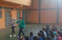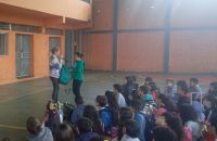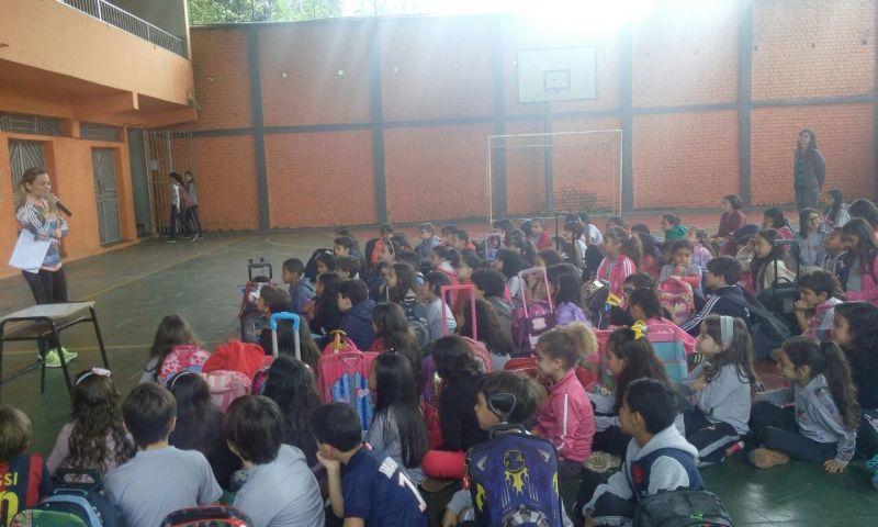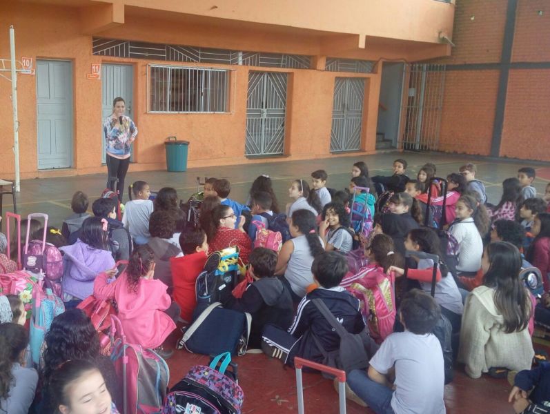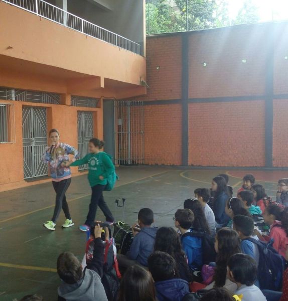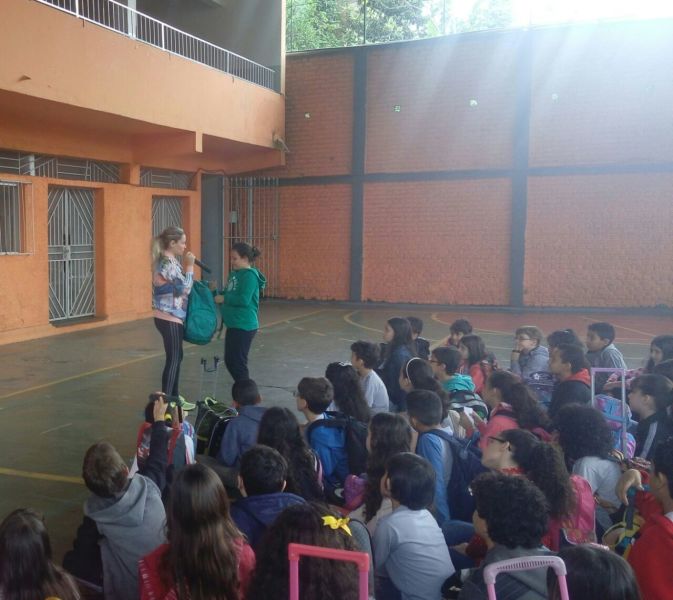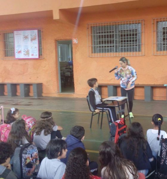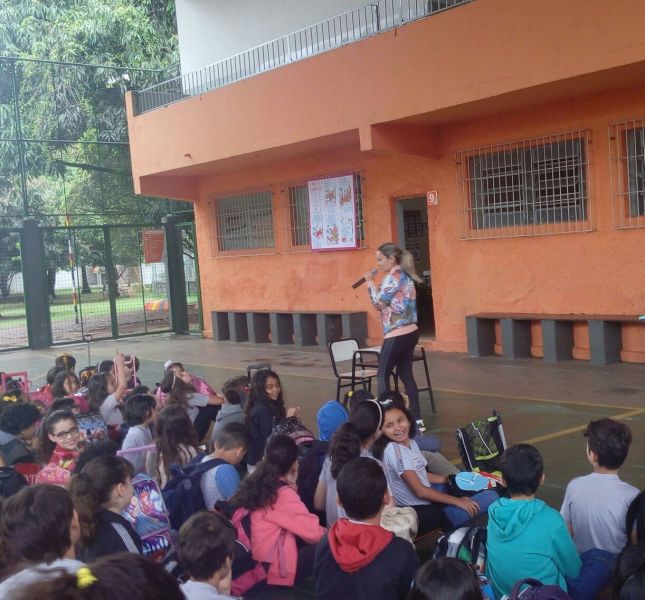 Ela deu dicas importantes para os alunos do 1º ao 5º ano do Ensino Fundamental, sobre postura e a melhor forma de carregar a mochila sem prejudicar a coluna.