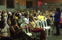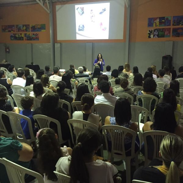 Na palestra “Construir e reconstruir saberes na relação pais e filhos”, Cléa Mara brilhantemente falou sobre como construir uma relação fortalecida nos bons exemplos. A conduta dos filhos depende dos exemplos que eles recebem dos adultos.