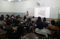 No encontro abordamos assuntos sobre a rotina escolar e apresentamos a proposta pedagógica da escola.