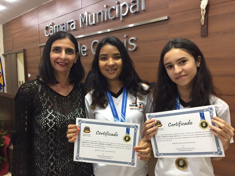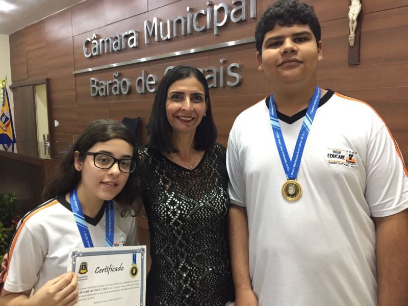 A medalha "Gercina Roscoe" foi entregue pela Câmara de Vereadores de Barão de Cocais aos estudantes que se destacaram no ano de 2016. Parabéns a todos os alunos pelo empenho e dedicação!