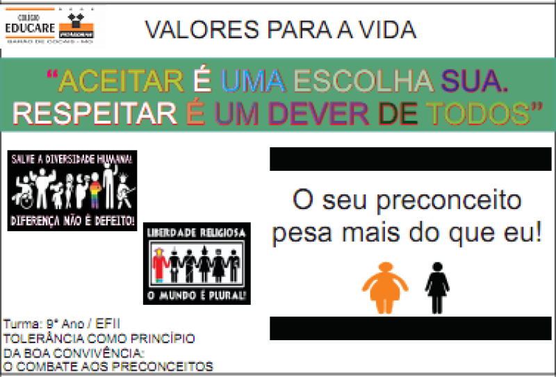 O Colégio Educare apresenta o 1º Projeto Interdisciplinar-Valores para a vida...