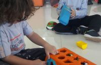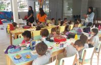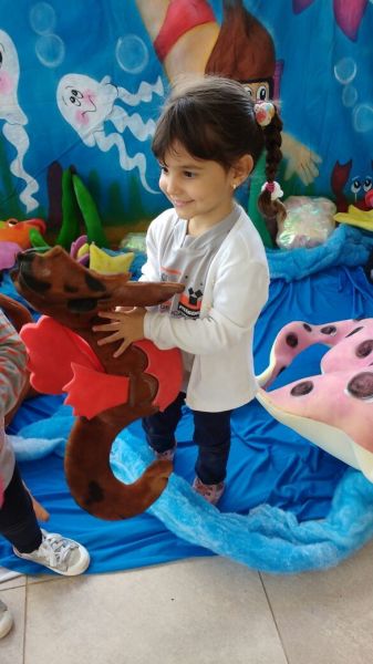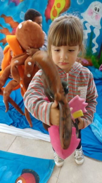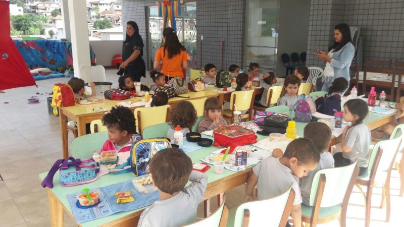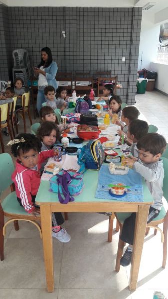 Lá participaram de uma contação de história muito interessante: o livro...”Quer brincar comigo?” Depois fizeram uma visita muito divertida à brinquedoteca e para terminar: o lanche coletivo. Que delícia!