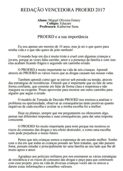 No Ponto de encontro do dia 14 de julho, os alunos receberam os certificados e o Colégio Educare através da vice-diretora Maria Geralda Oliveira, recebeu a placa de 1º lugar da Redação Proerd 2017.