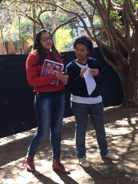 No dia 13 de julho , os alunos do 7º ano juntamente com a professora de Língua Portuguesa, Adriane Dias, apresentaram no Espaço Verde, para a própria turma,o livro: "O menino que vendia palavras".
