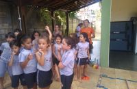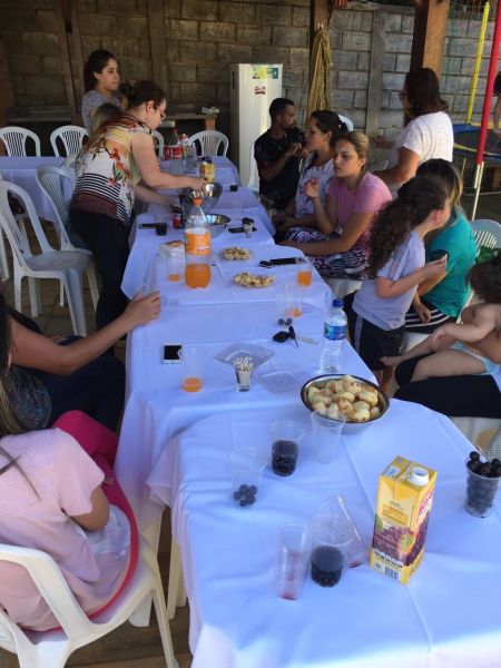Foi neste clima de alegria que todos participaram das brincadeiras ao ar livre e saborearam um delicioso lanche oferecido pela família que nos recebeu.