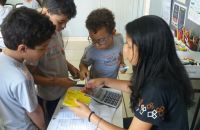 Para realizar a atividade, cada grupo recebeu R$ 100,00 em dinheiro de brincadeira e uma tabela de preços. Eles se reuniram, analisaram o que precisaria ser comprado e o que já tinha no material individual.