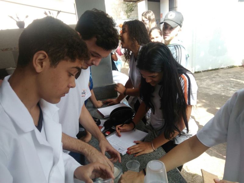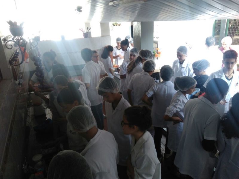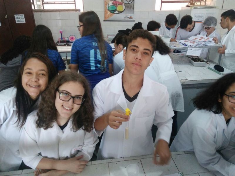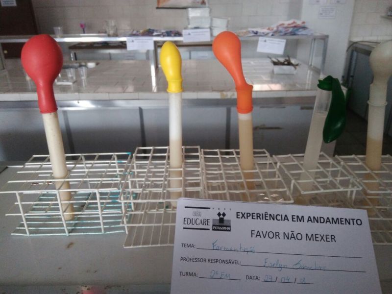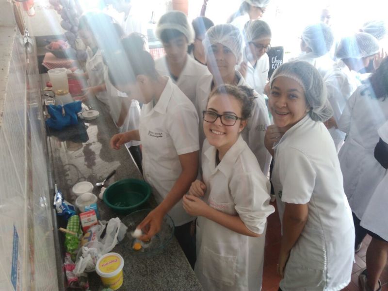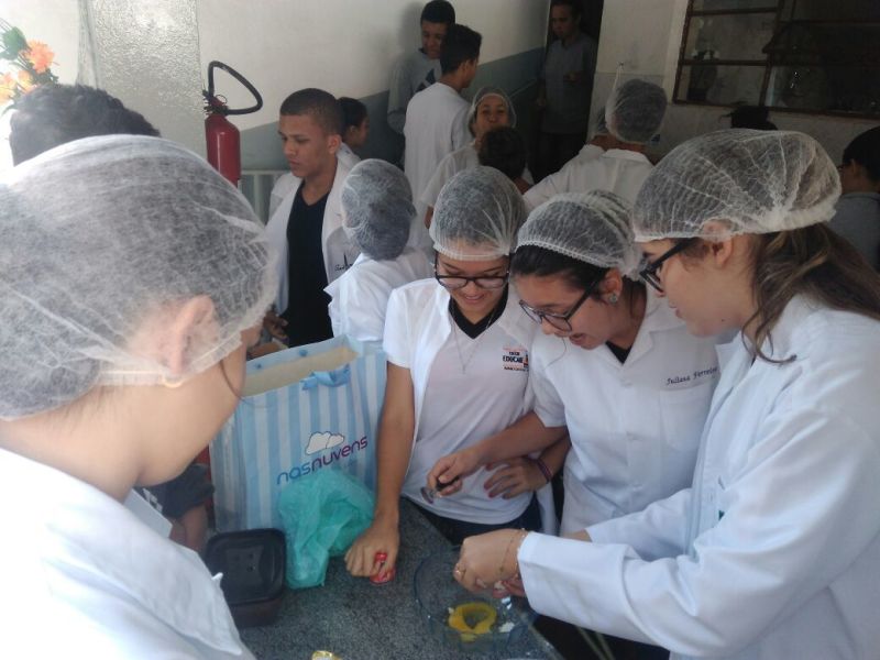 Os alunos da 2ª SÉRIE/EM orientados pela professora de Biologia,Evelyn Sanches desenvolveram experiências para observar a ação de microorganismos no nosso processo alimentar. Fizeram cupcakes e iogurtes na cozinha experimental e um processo de fermentação biológica no laboratório.
