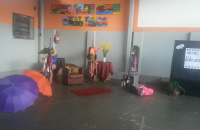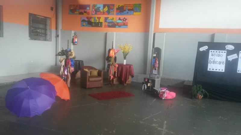 O ambiente montado pelos alunos e professores contou com diferentes fantasias, diversos adereços, espelhos, poltronas.