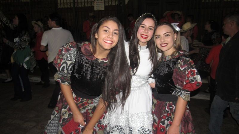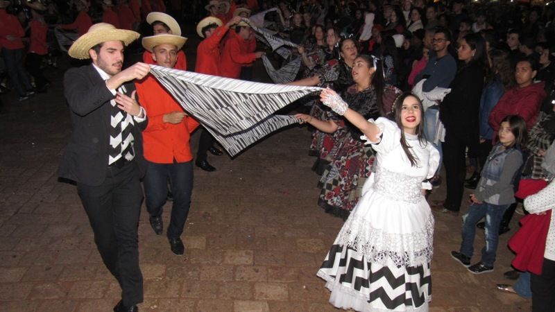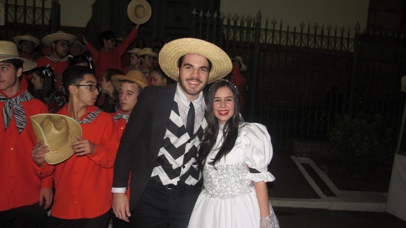 Com seus vestidos rodados e chapéus de palha, os alunos do 8º Ano EFII à 3ª Série EM, conduzidos com muita animação pela Professora Conceição Oliveira, inundaram o adro da Matriz com a alegria e o entusiasmo de nossas cores.