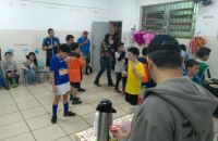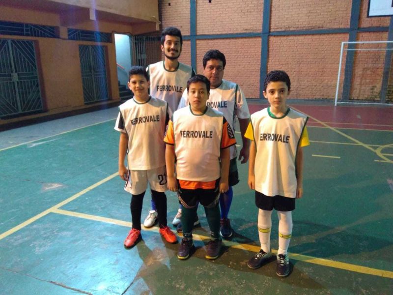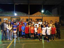 O Professor Reinaldo Valentin e a meninada da escolinha de futsal fez a bola rolar de uma forma prazerosa,divertida e com a participação dos familiares.