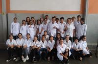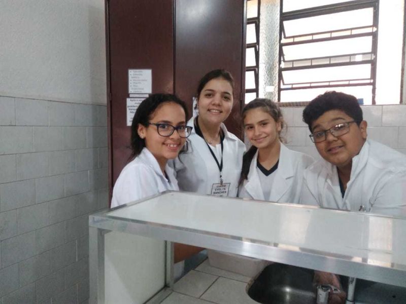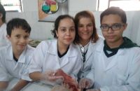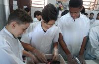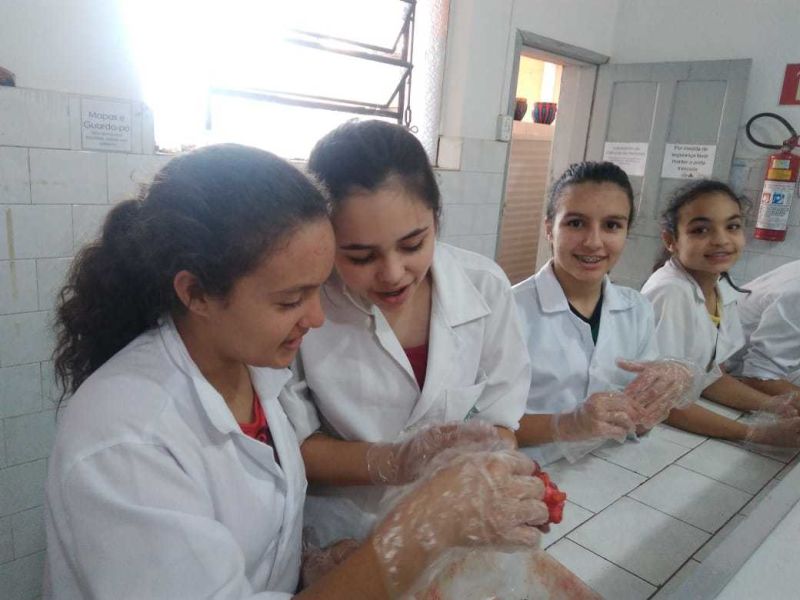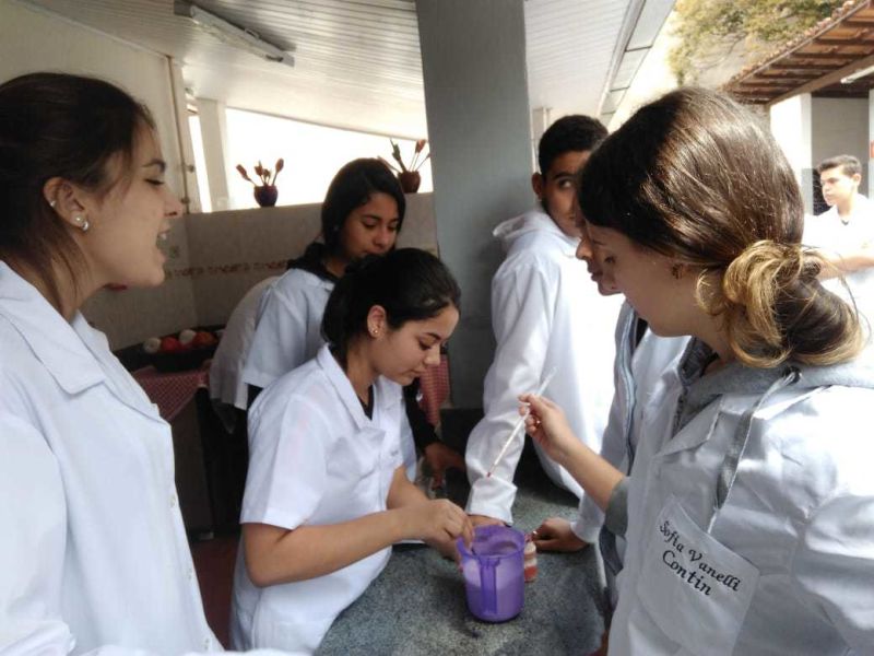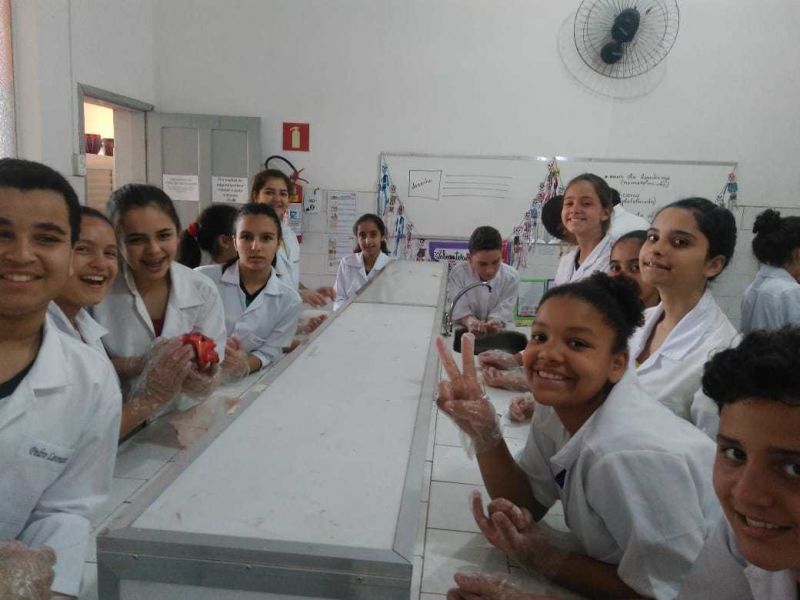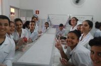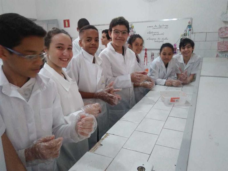 A aula ainda contou com a participação da nossa professora de português Adriane como ajudante de laboratório e que orientou a turma na elaboração de relatório da prática do dia.