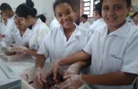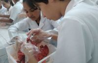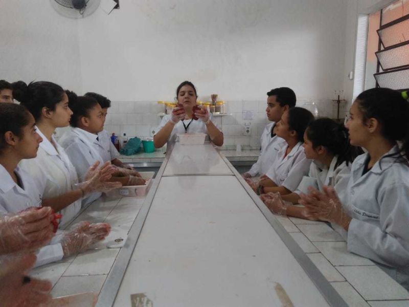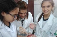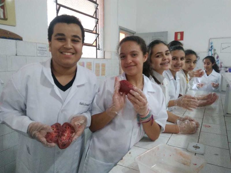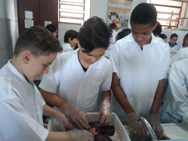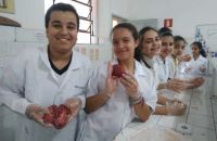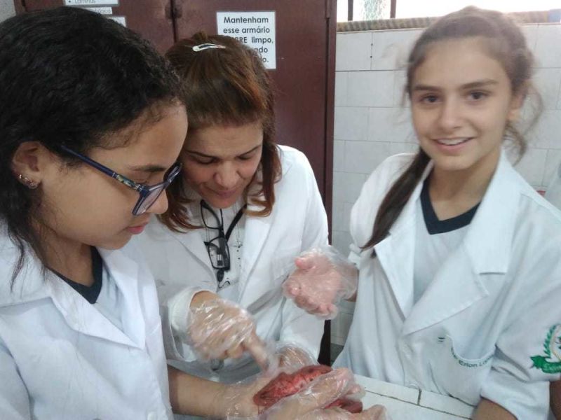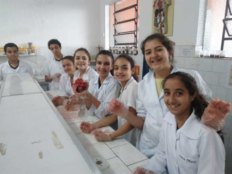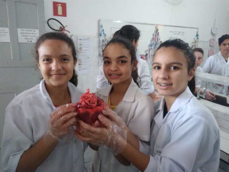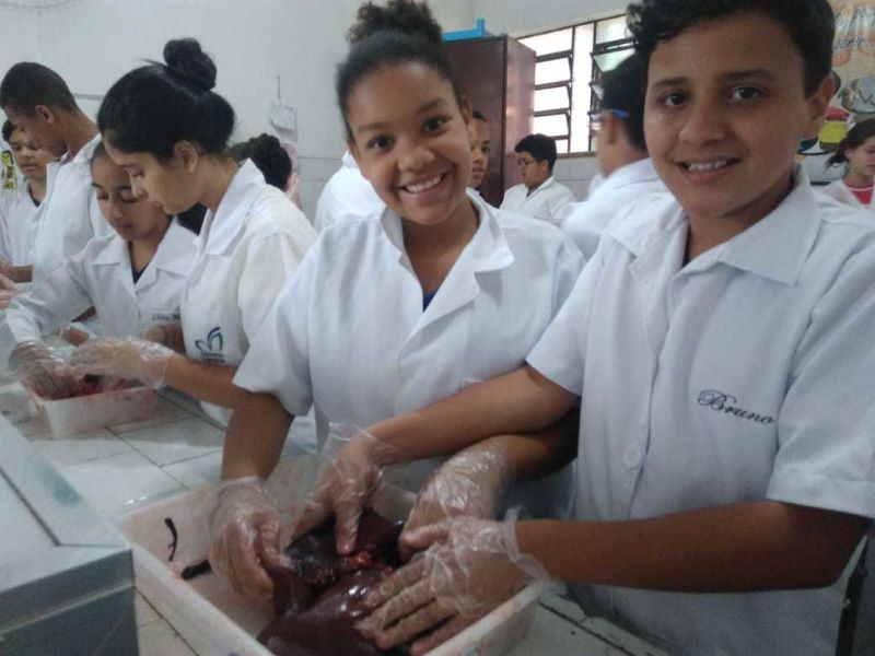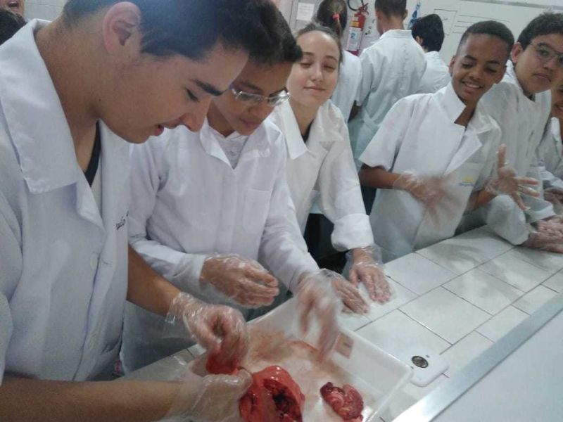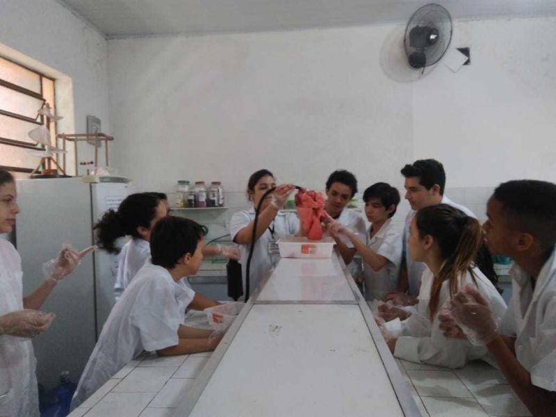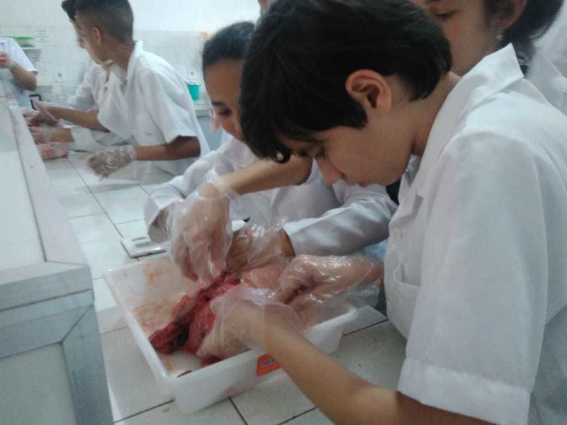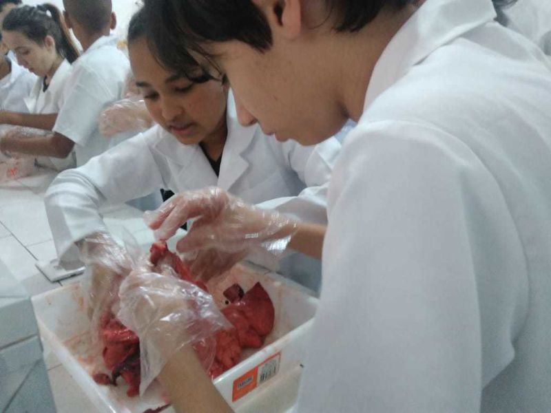 Foram usados órgãos suínos para expressar a atividade que foi cheia de descobertas e encantamento pelas maravilhas do funcionamento do nosso corpo.