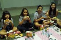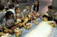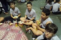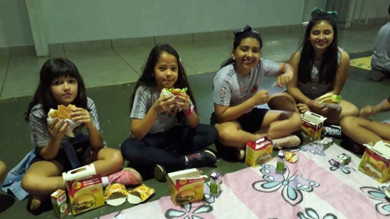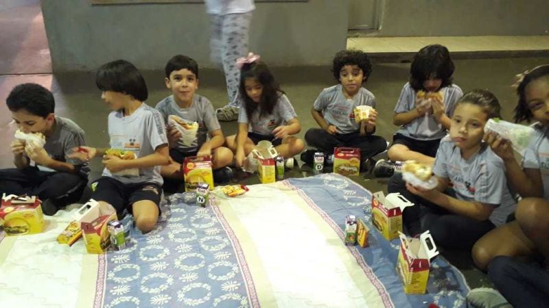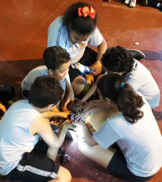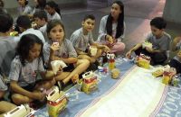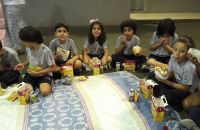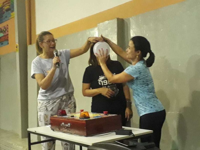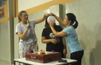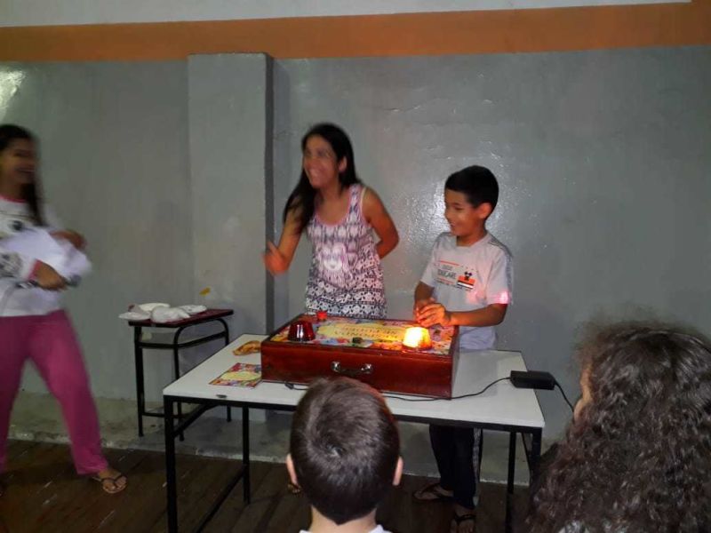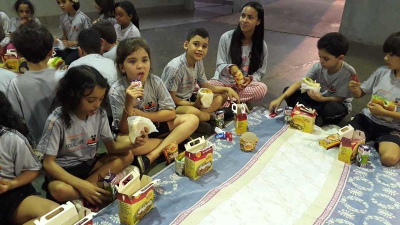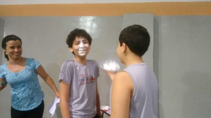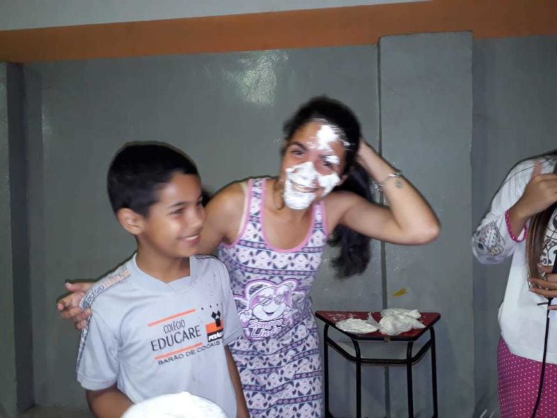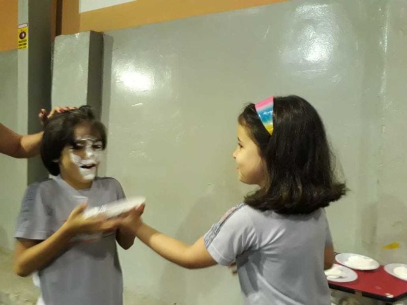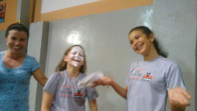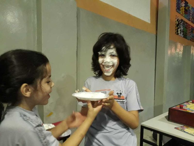 Duas atividades agradaram mais as crianças: a caça ao tesouro e a torta na cara. Ainda tivemos lanches deliciosos, do jeitinho que a criançada gosta: sanduíche, batata frita, pastel, suco e um saboroso café da manhã. Foi bom demais!