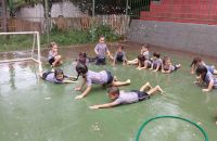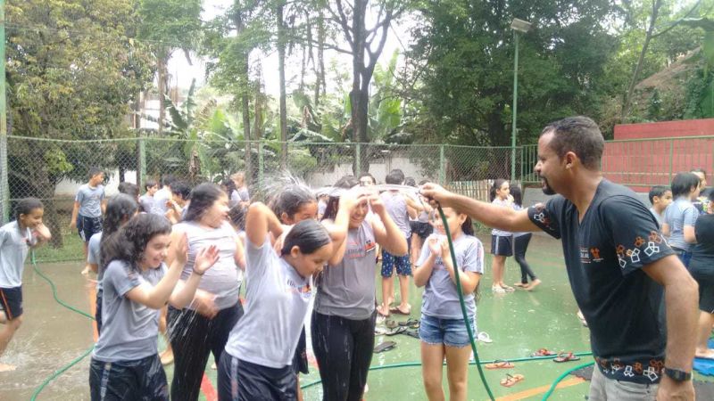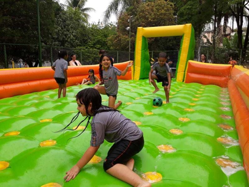 O futebol de sabão fez o maior sucesso e ajudou a refrescar os alunos do Pré maternal ao 5º Ano EFI.