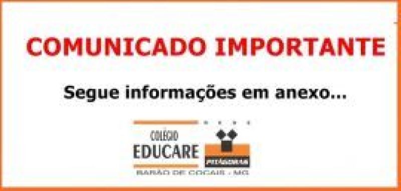 Notícias 12/02/2019 COMUNICADO IMPORTANTE-12/02/2019 Arquivos anexos Fazer download arquivo 1 (Comunicado__Pais_e_Alunos_12-02-2019.pdf) Histórico 26/08/2023 Gincana Cultural, Esportiva e Solidária 2023. 13/09/2022 Gincana Cultural e Esportiva 2022- EI E EFI 13/09/2022 Gincana Cultural e Esportiva 2022- EFII E EM 15/07/2022 Festa Caipira 2022- Momento de confraternização e valorização cultural 02/06/2022 DIA DAS MÃES 26/05/2022 O BRINCAR E O APRENDIZADO 18/04/2022 Rodas de Prosa com os adolescentes do Colégio Educare 05/04/2022 Dia Mundial da Água: alunos plantam mudas de árvores 27/03/2022 QUE CALOR!!! 23/03/2022 Educar é ensinar a pensar
