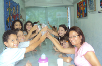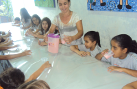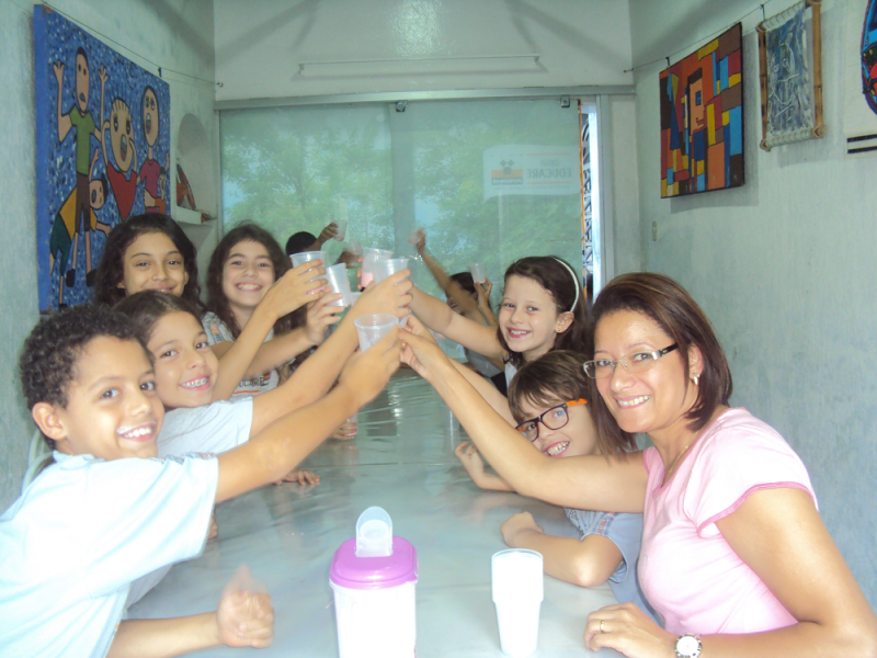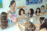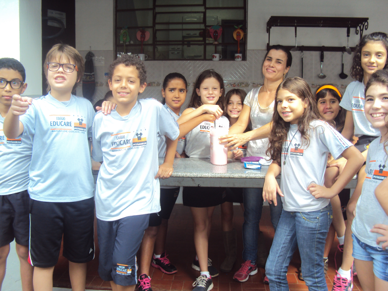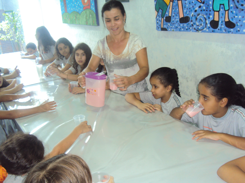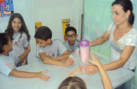 Com o objetivo de observar a existência das bactérias benéficas aos seres vivos e verificar a ação delas na formação do iogurte, os alunos do 4º Ano do Ensino Fundamental fizeram junto com a professora de Ciências, Elenice Vilela, um iogurte natural.
