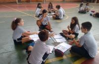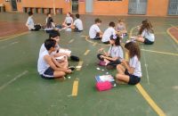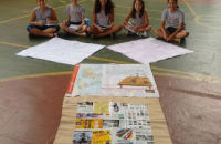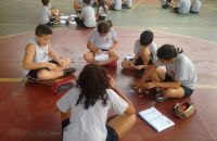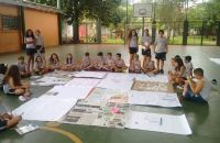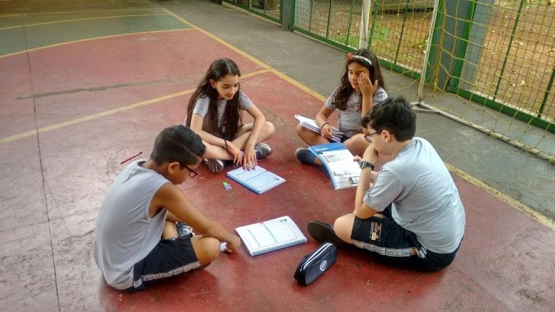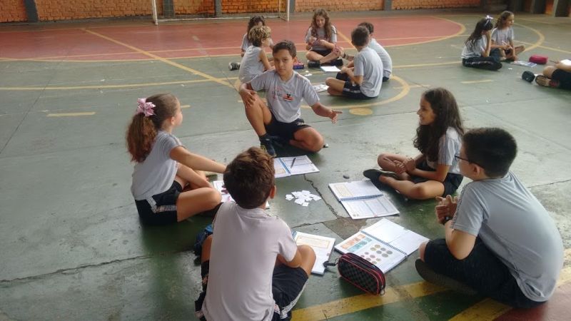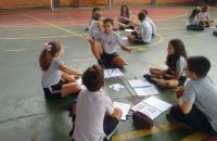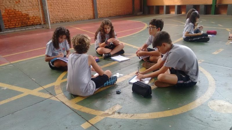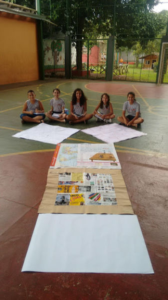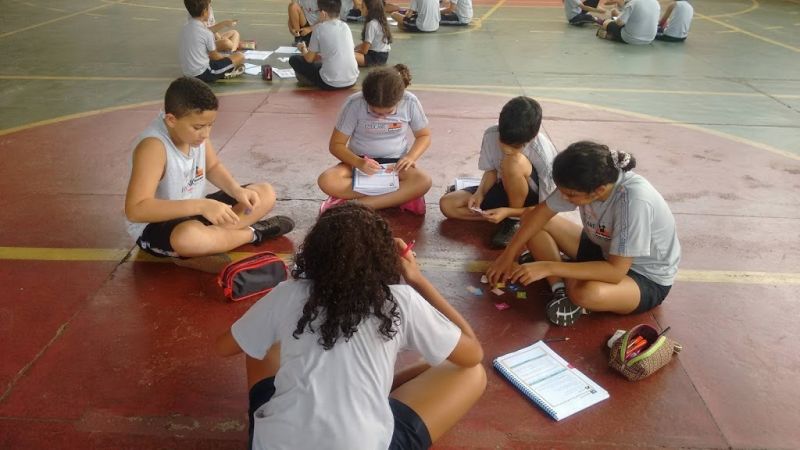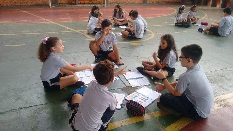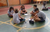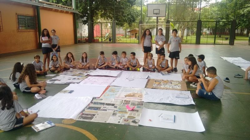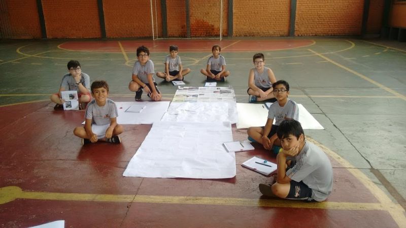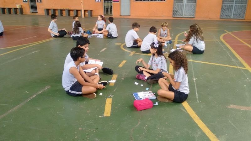 Nessa atividade, cada aluno do 5º ano EFI confeccionou um quadrado de 1 m² para que fosse possível ter a ideia exata desse tamanho. Em seguida cada grupo criou seu espaço e se divertiram enquanto aprendiam as noções básicas.