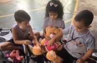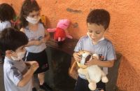 As crianças do 1º Período brincaram de médico veterinário e aprenderam, de forma lúdica e divertida vários conceitos e cuidados com os animais.