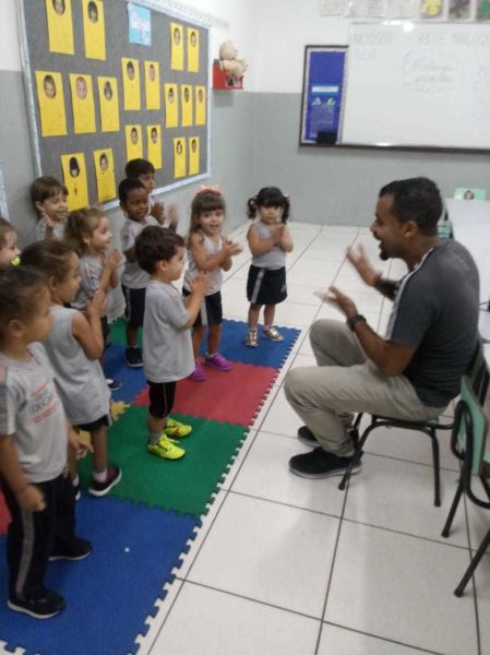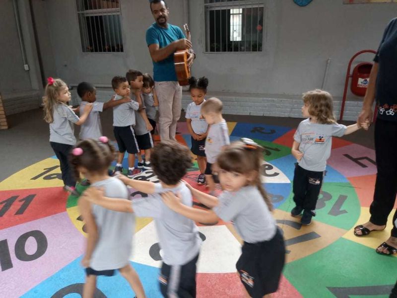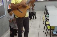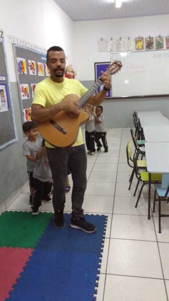 POR MEIO DAS AULAS DE MÚSICA O PROFESSOR REINALDO VALENTIN AJUDA A MENINADA A AMPLIAR SEU REPERTÓRIO E DESENVOLVER A LINGUAGEM ORAL.