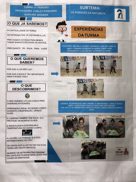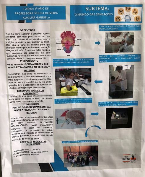 A organização em etapas possibilitou que as turmas tivessem mais embasamento ao longo do trabalho, pudessem apresentar para os colegas um experimento de acordo com o subtema proposto e um baner com um registro curto sobre o decorrer deste processo.