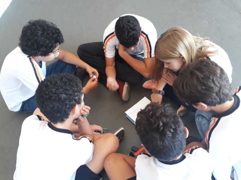 Os estudantes vivenciam desafios matemáticos com brincadeiras divertidas e descontraídas, inspiradas em problemas de raciocínio lógico, que incentivam os alunos a desenvolverem a habilidade de trabalhar em grupo, resolvendo desafios matemáticos de forma lúdica e dinâmica, possibilitando uma maior compreensão da disciplina na prática.
