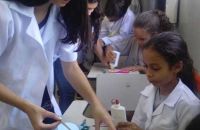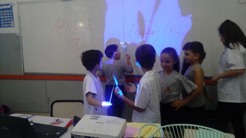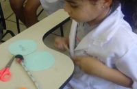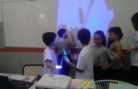 Elas se encantaram ao fazer a simulação dos movimentos. Foi um momento divertido e com muita aprendizagem.