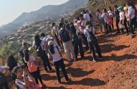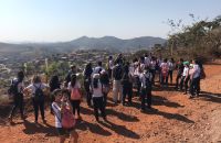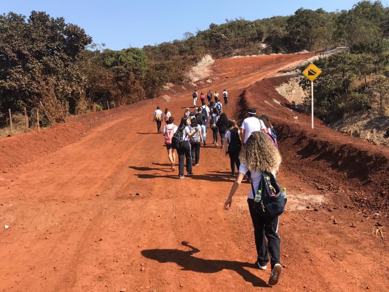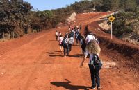 Durante a longa caminhada, foram abordados aspectos da estrutura geológica, do relevo, da vegetação e dos impactos ambientais no município e região.