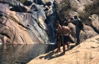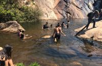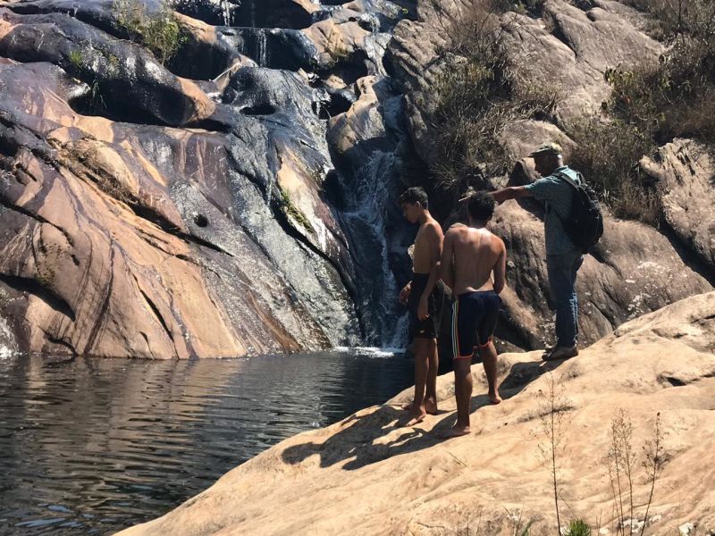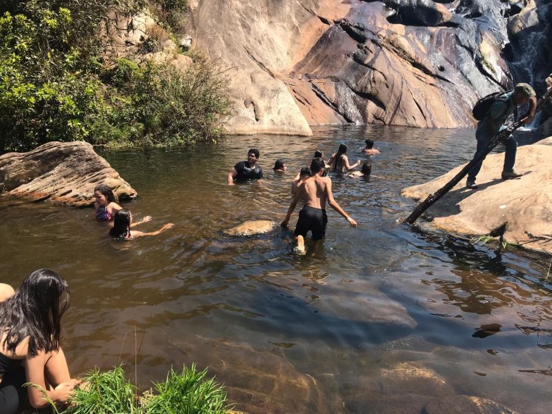 Após uma caminhada que exigiu bastante esforço de todos, os participantes puderam se refrescar na linda Cachoeira da Cambota, patrimônio ambiental e turístico do município de Barão de Cocais.