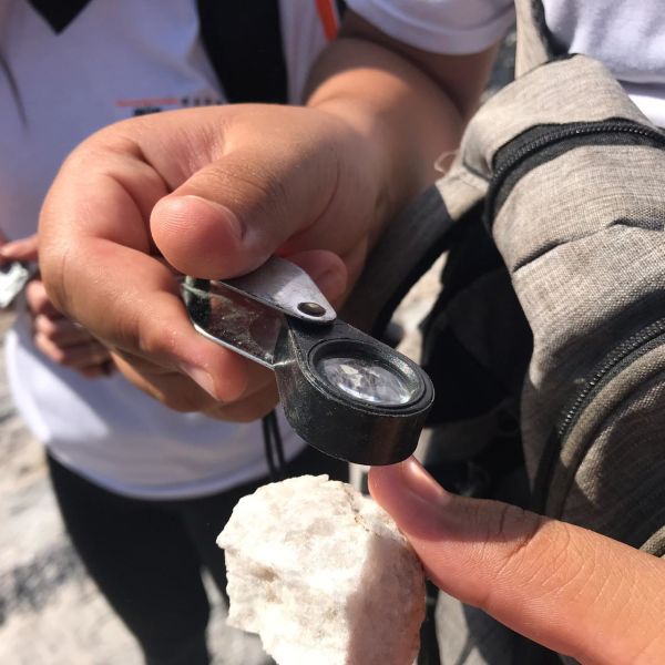 Por meio da observação direta de amostras de rochas e da paisagem em geral, os alunos tiveram a oportunidade de completar o conteúdo estudado em sala de aula, aliando teoria à prática de uma forma bem significativa.