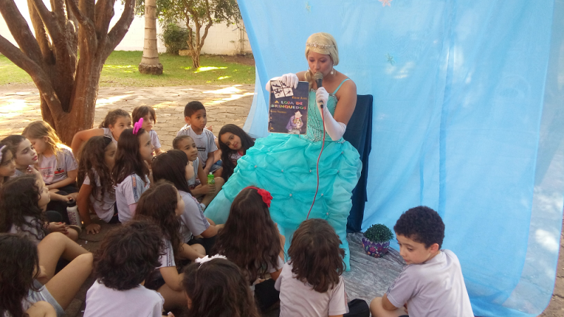 No início de agosto esses alunos foram surpreendidos com a “visita” de alguns personagens que presentearam cada turma com um livro específico para ser trabalhado para a Mostra de Literatura em novembro.