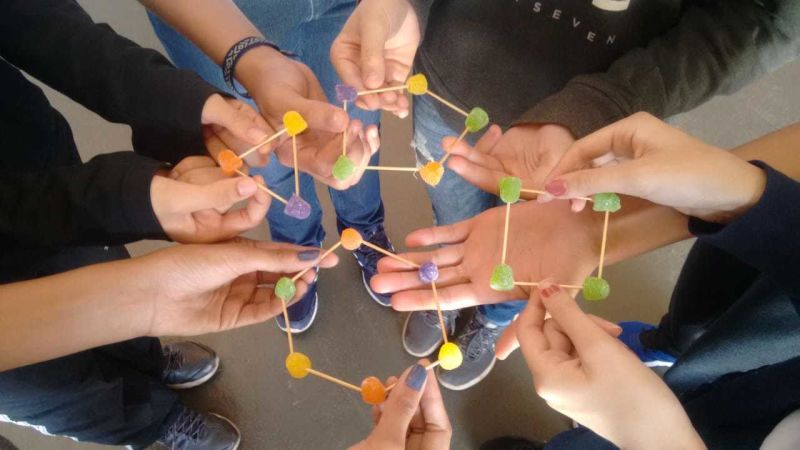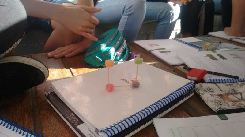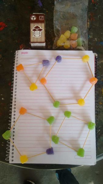 Para comprovar essa propriedade os alunos do 8° ano EFII, orietados pela Professora de matemática Raphaela Vieira, construiram alguns polígonos feitos de palitos de dente e bala de goma. Isso mesmo, bala de goma!