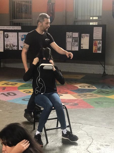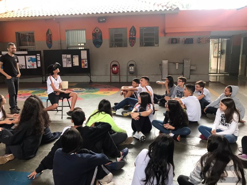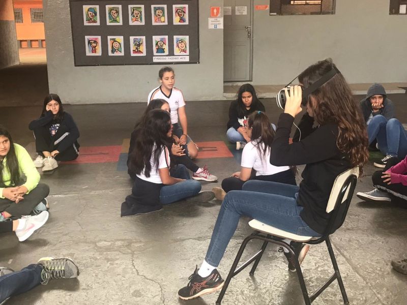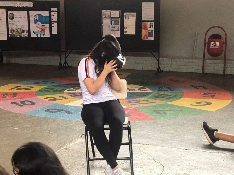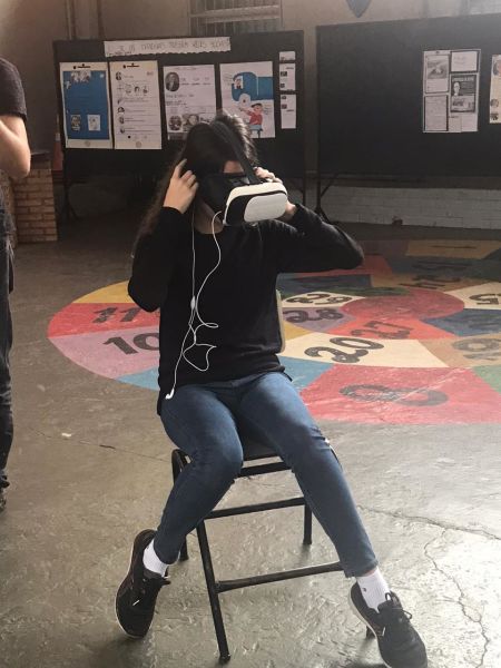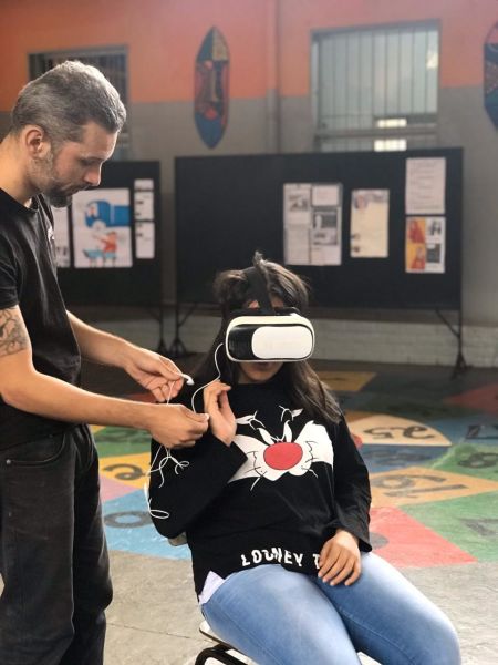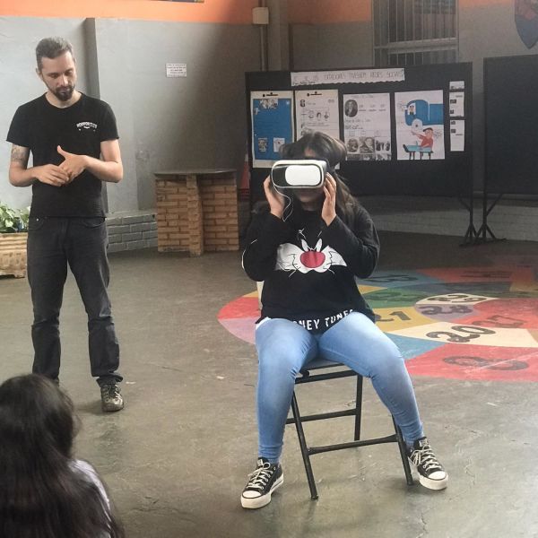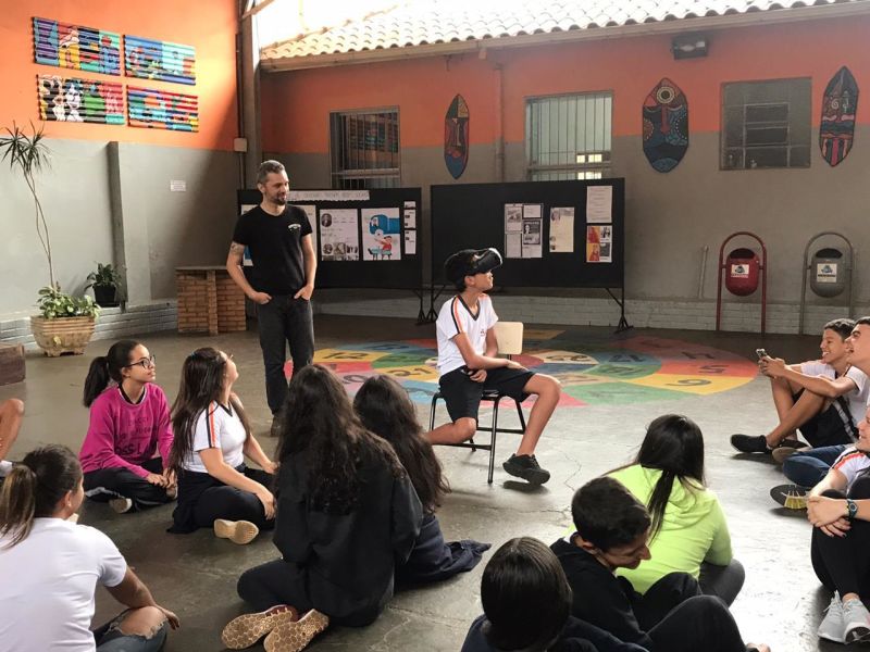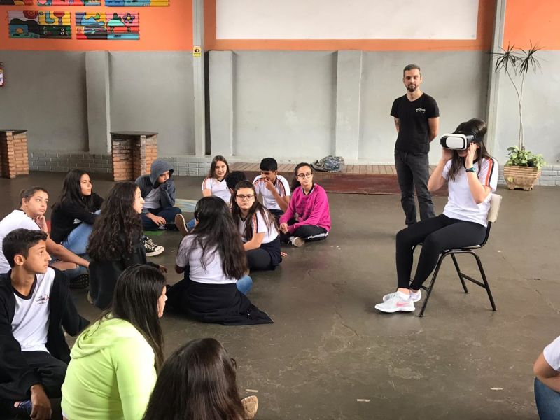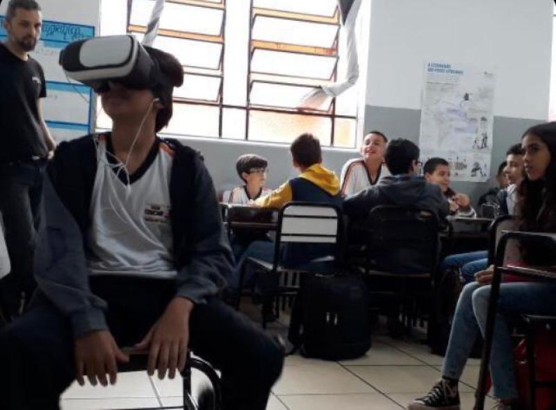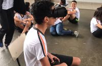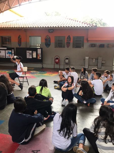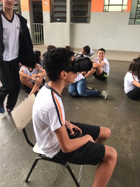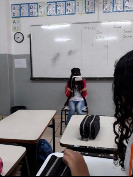 Pois os alunos do 7º e 8º ano EFII, orientados pelo professor de geografia, Matheus Guerra , foram visitar diversos ambientes utilizando óculos de realidade virtual.