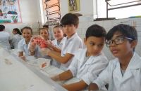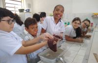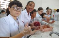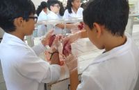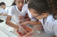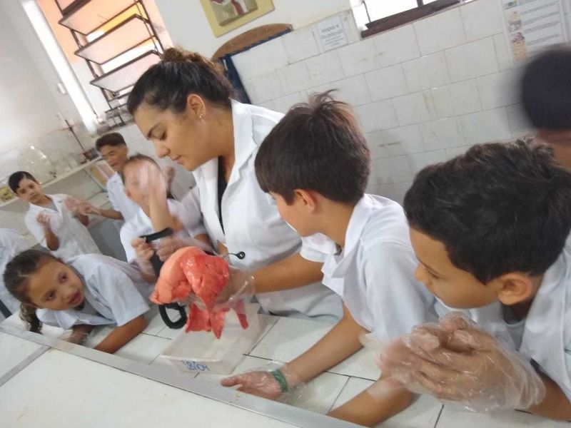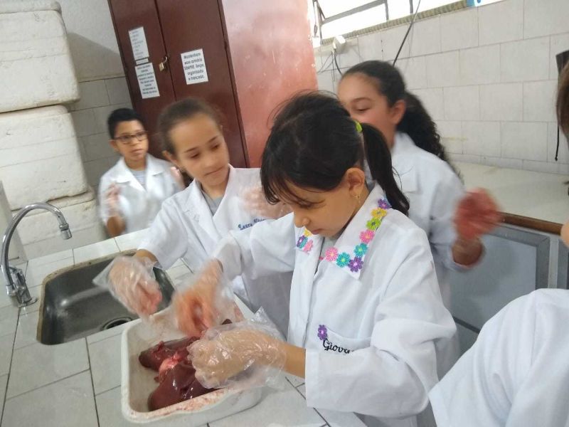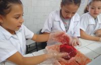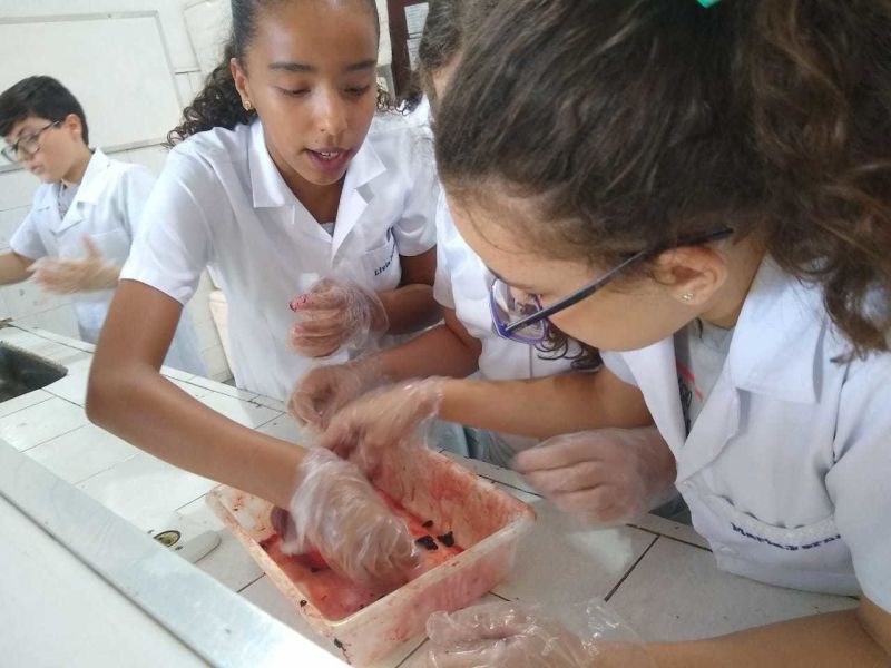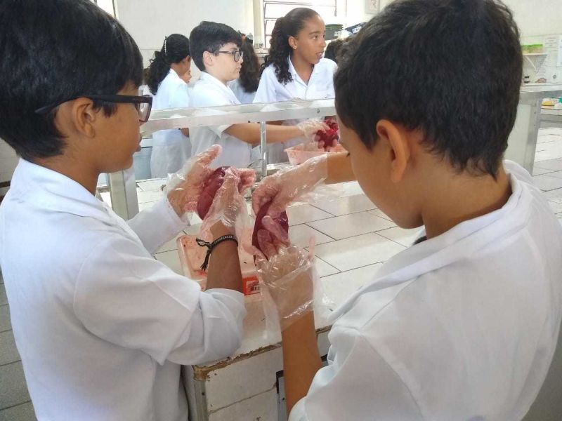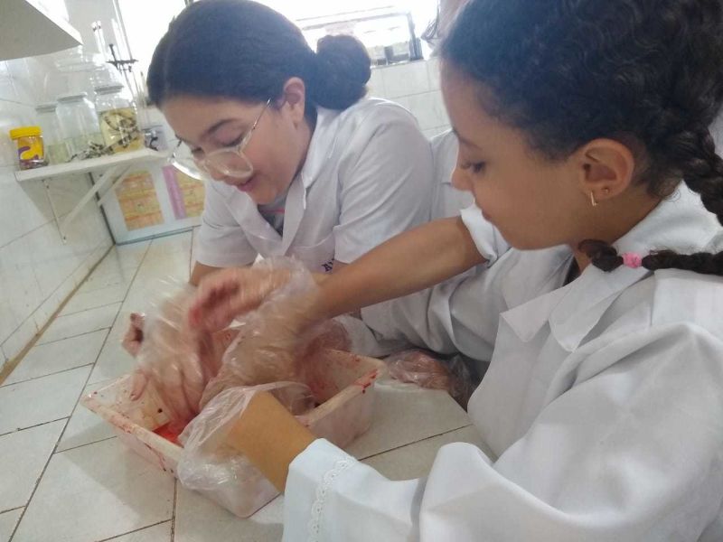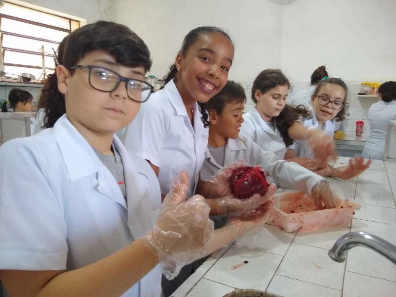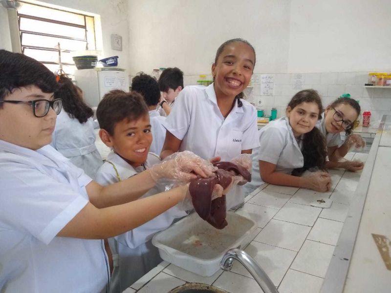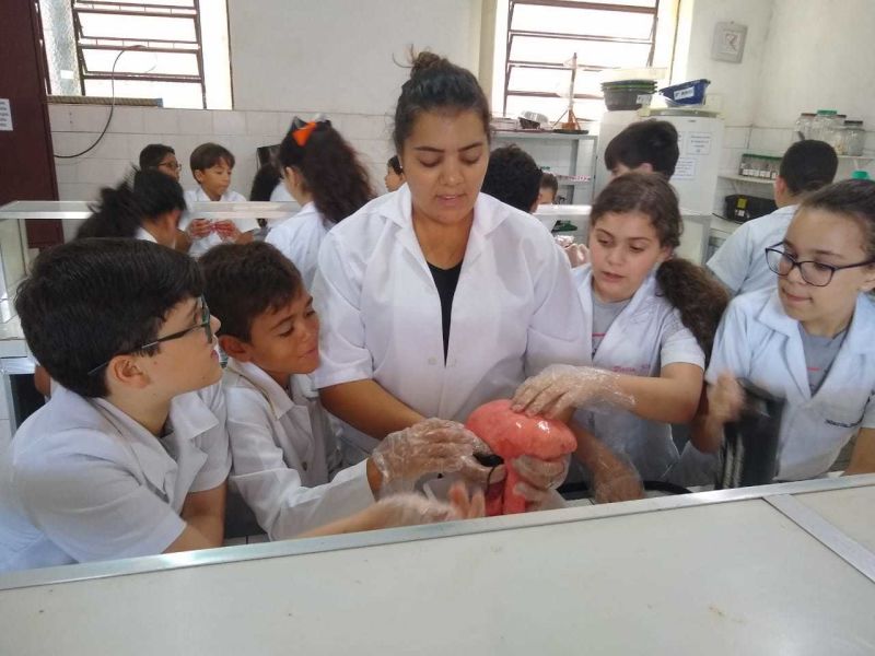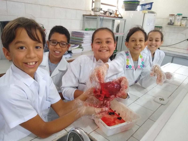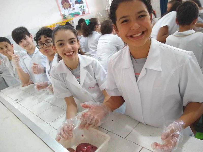 Os alunos do 5º Ano EFI, orientados pela professora Evelyn Sanches, fecharam com chave de ouro os estudos sobre o corpo humano em uma aula de laboratório pra lá de especial. Utilizando órgãos de suínos, os alunos puderam tocar e identificar as estruturas que são bem similares ao do corpo humano. A aula foi cheia de descobertas e muito aprendizado. "Esse 5* ano é show!", concluiu a professora Evelyn Sanches.