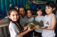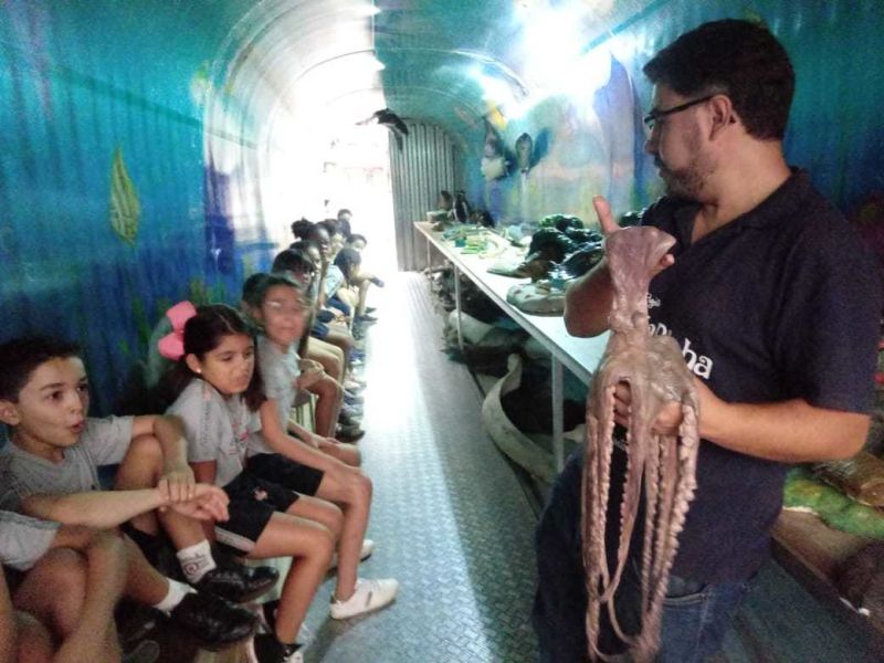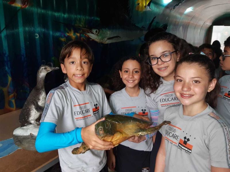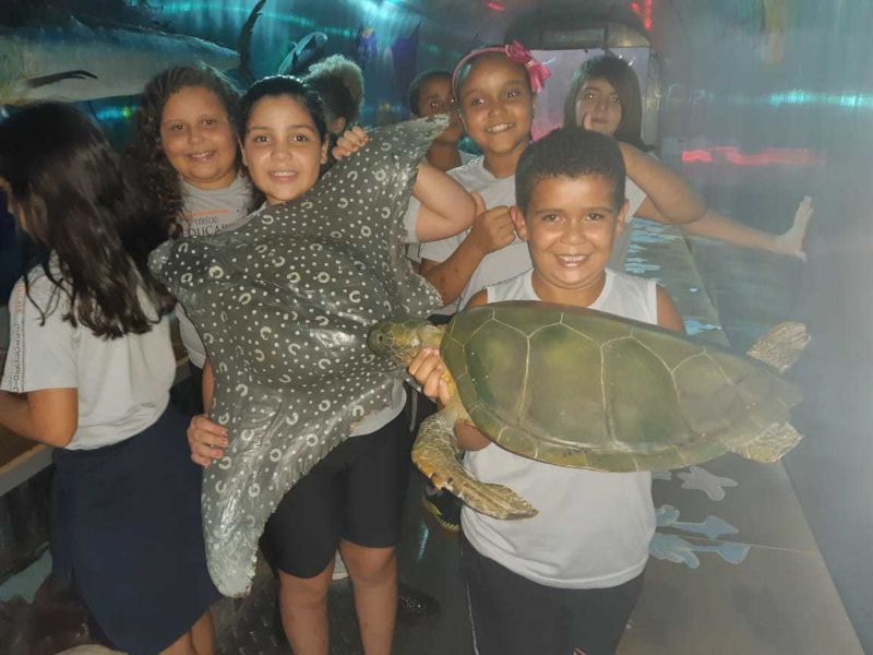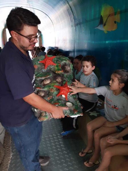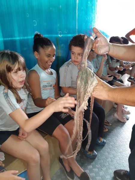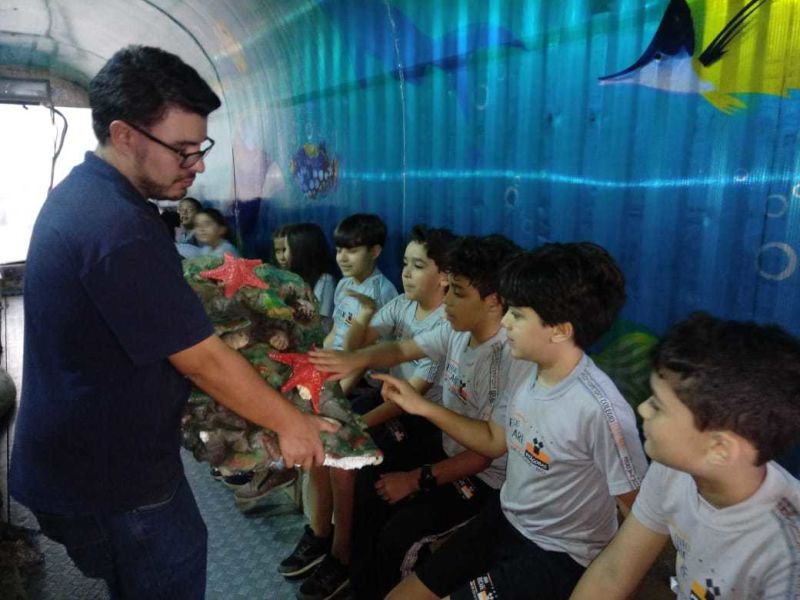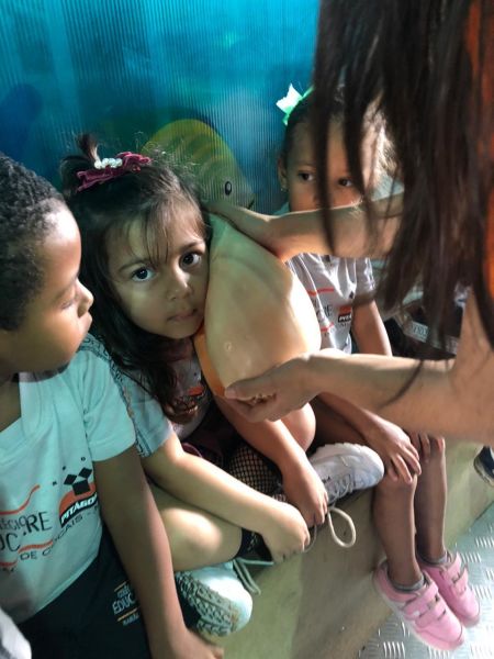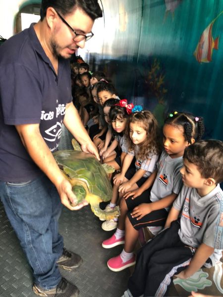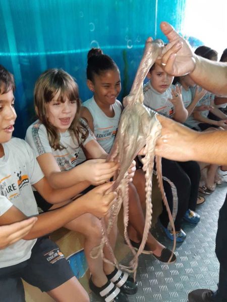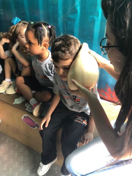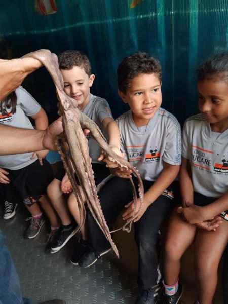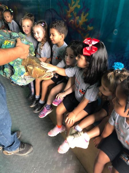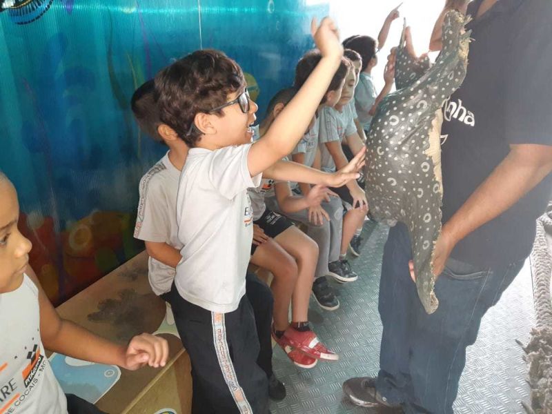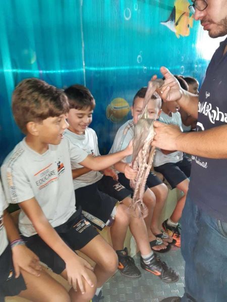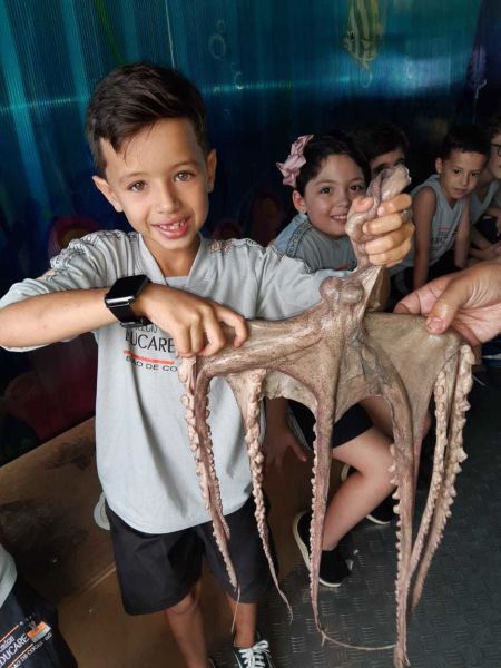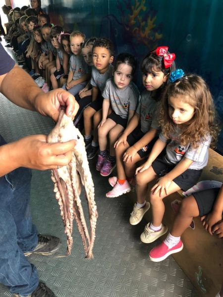 Durante alguns dias que antecederam essa visitação todos os alunos participaram de aulas específicas sobre os animais marinhos com a professora de Ciências do Colégio, Evelyn Sanches, por isso todos eles estavam muito curiosos, com os olhinhos brilhando de expectativa quando entraram no container.