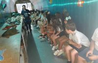 A grande carreta estacionou em frente ao Colégio no início da tarde e ficou até o horário de saída causando euforia na meninada.