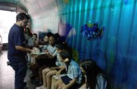 A professora Rhuza Oliveira foi a responsável em fazer as mediações com todas as turmas dentro do container, por meio de comentários que complementaram a apresentação e justificaram as aulas práticas de Ciências que fazem parte do nosso cotidiano.