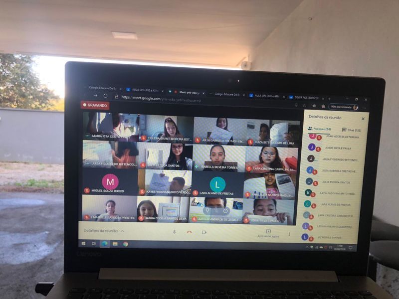 A tela que faz a conexão entre professores e alunos do Ensino Fundamental I demonstra como somos capazes de recriar espaços e recursos para dar continuidade ao processo de ensino e aprendizagem nesta época de pandemia.
