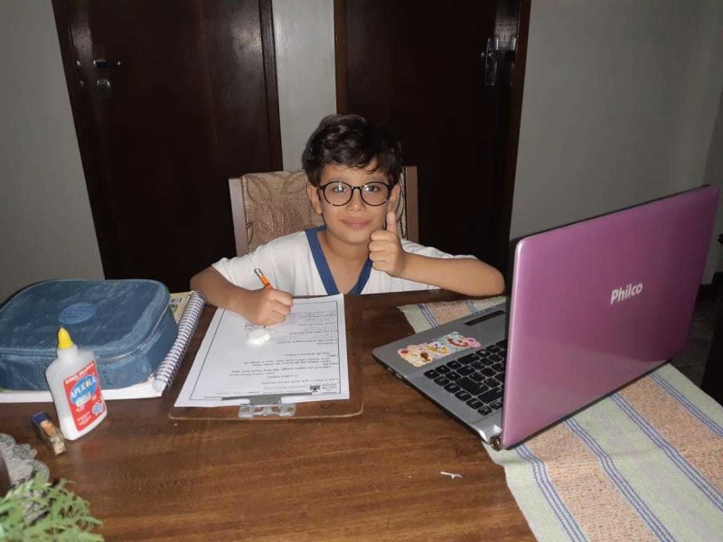 "Parabéns aos professores! Tenho acompanhado as aulas on-line, com Vinícius e vejo o esforço e dedicação de cada aula. Meu reconhecimento ao trabalho dos meus colegas de profissão." Depoimento de Fernanda Sena, que também é professora, mãe de Vinícius Sena do 3° ano EFI.