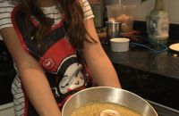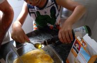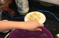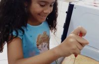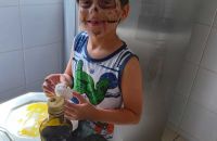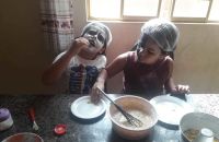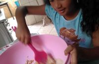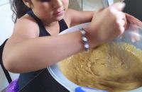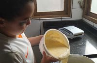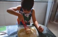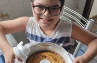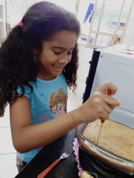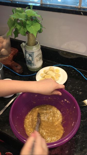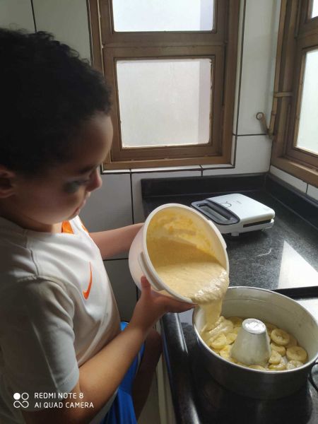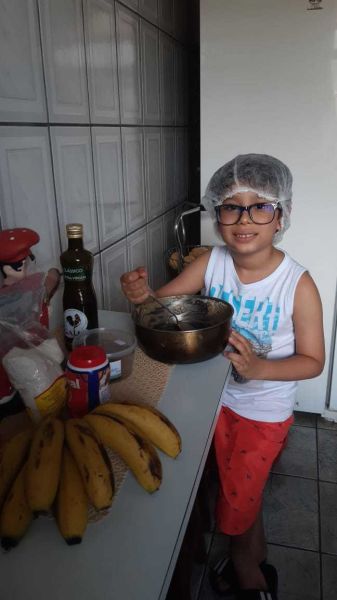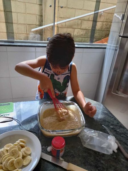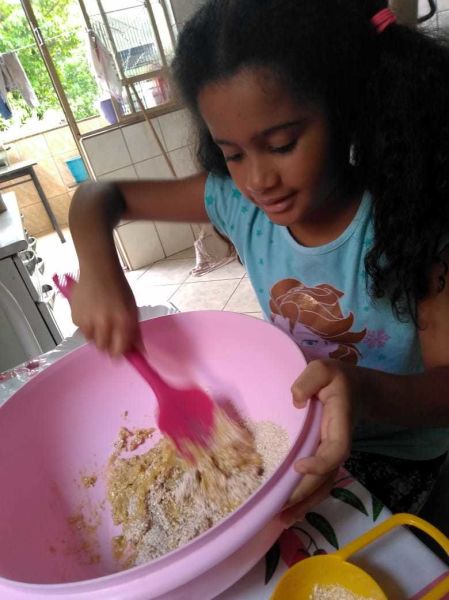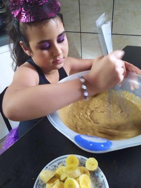 Ela teve um bate- papo, com a meninada, sobre nutrição e fizeram uma receita deliciosa de Bolo de banana. Além disso , plantaram feijões, para que as crianças pudessem acompanhar o brotar da vida.