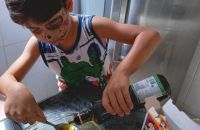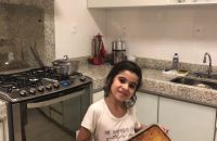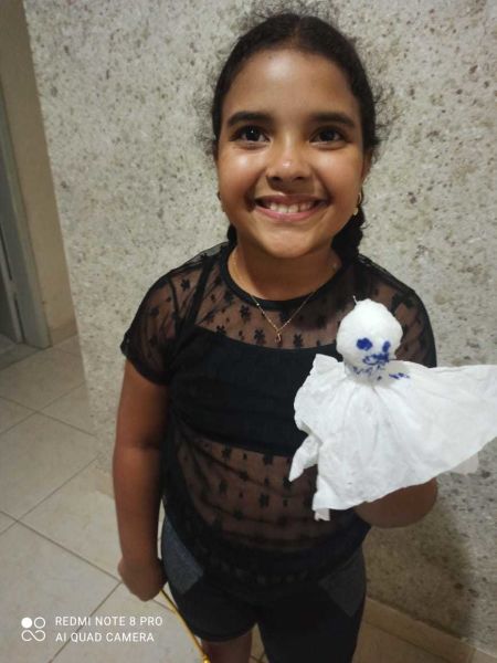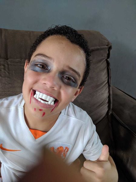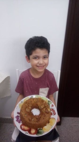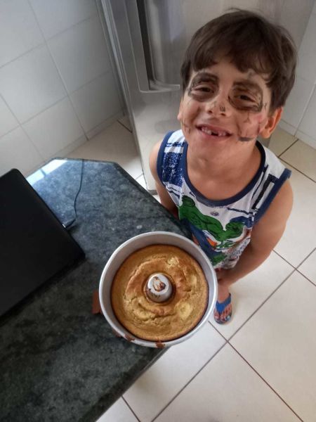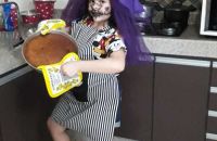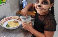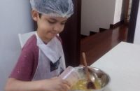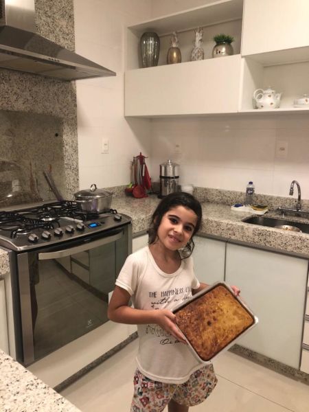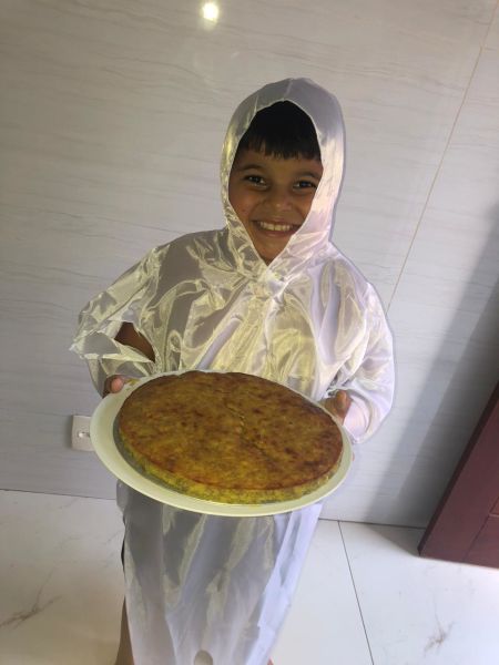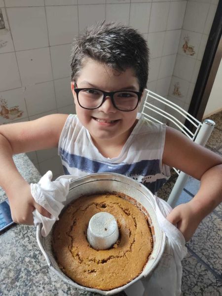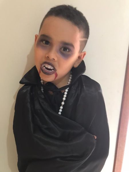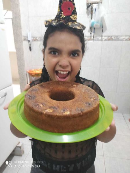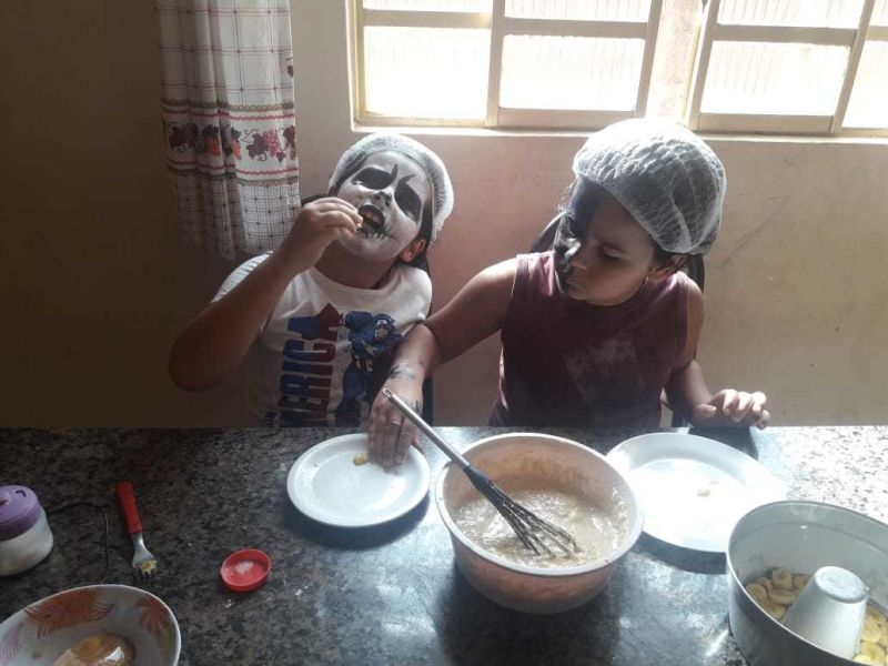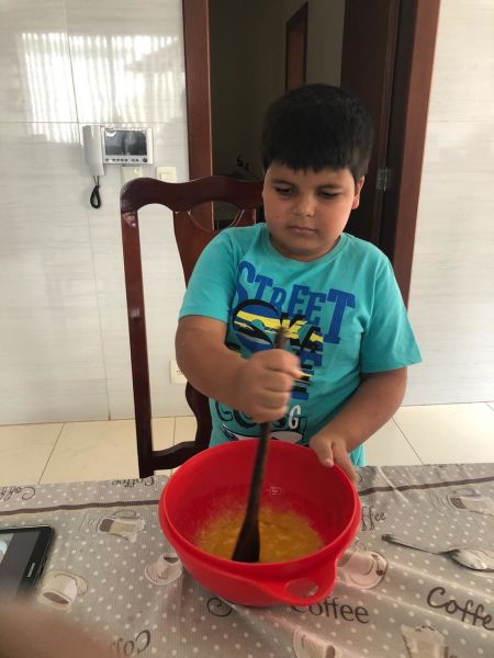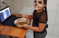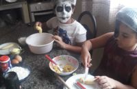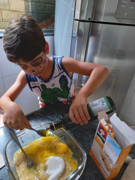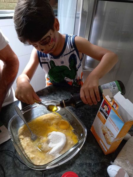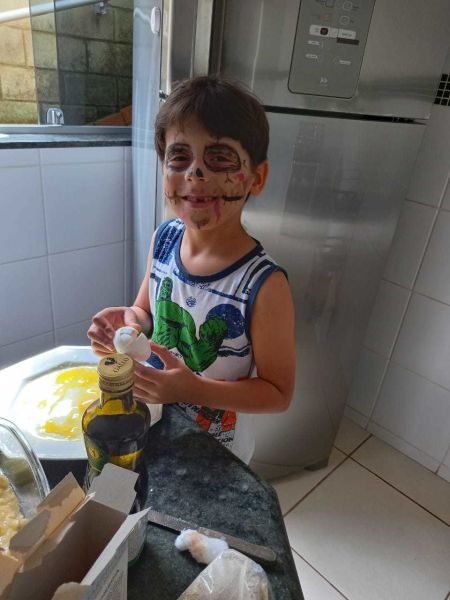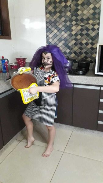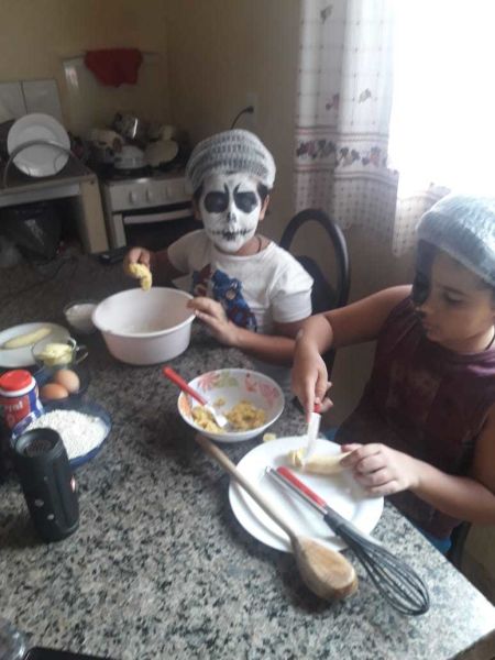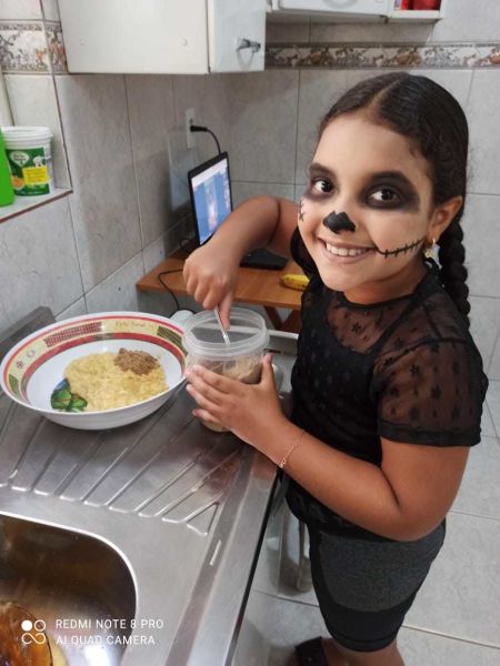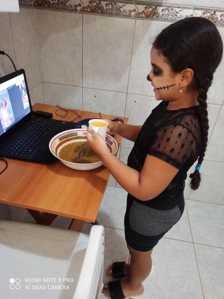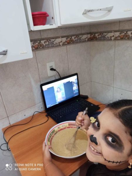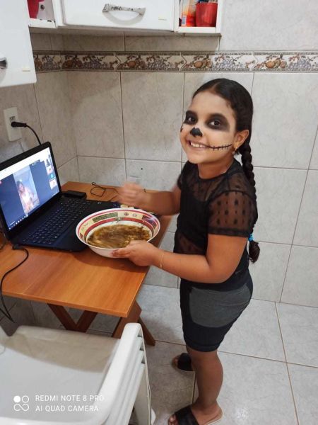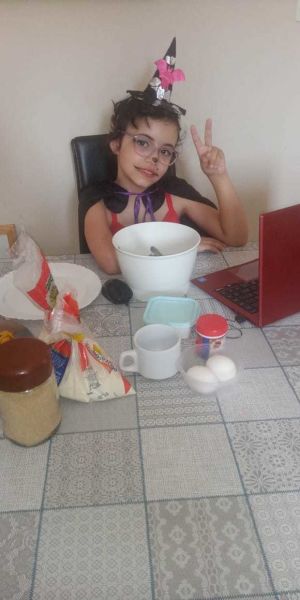 Todos os alunos fantasiaram e foram para a cozinha monitorados on-line pela professora Rhuza e sua convidada muito especial, a nutricionista Panmella Cardinalli.