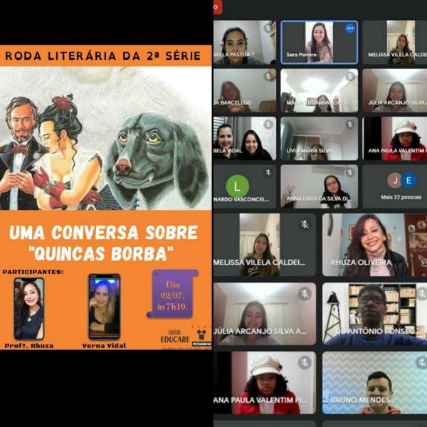 A Professora Sara, fez um bate-papo sobre a obra do exímio escritor brasileiro, Machado de Assis: "Quincas Borba". E para tal, nossa Roda Literária contou com convidadas super especias: Rhuza, professora de inglês e Verna Vidal, mãe da Isabela Vidal - aluna da turma.