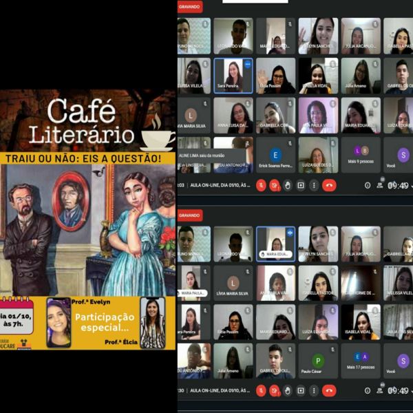 Nosso dia começou agitado! A polêmica machadiana da suposta traição de Capitu não poderia deixar de ser abordada com a 2° Série EM. Para isso, Élcia, professora de Física, e Evelyn, professora de Biologia, particparam do nosso bate-papo, deixando-o ainda mais aprazível. Afinal, traiu ou não? Eis a questão...