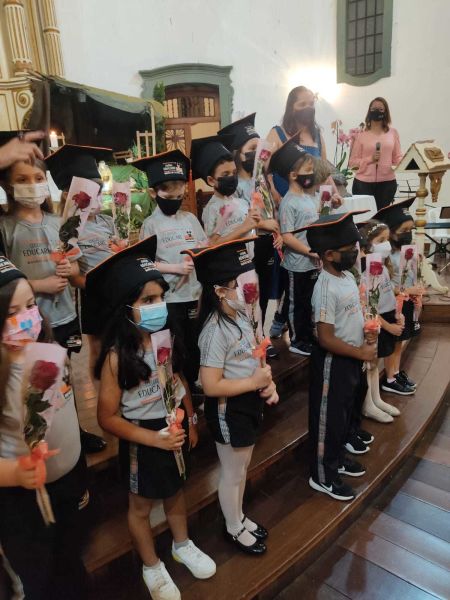 Os familiares dos formandos do 2º Período, 5º ano, 9º ano e 3º Série EM participaram, dia 09 de dezembro, no Santuário São João Batista, do Culto Ecumênico de formatura das turmas.