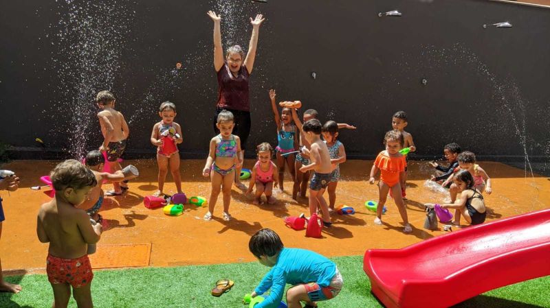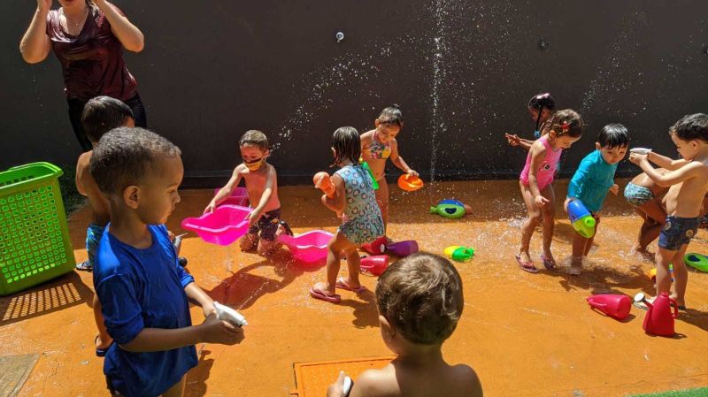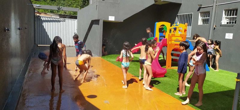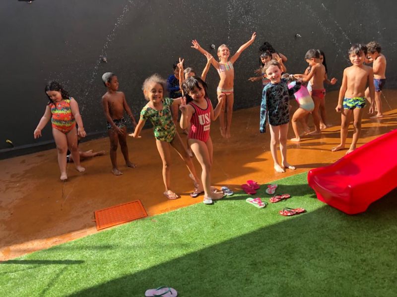 Os alunos do turno da tarde do Colégio Educare estrearam o Piso Molhado numa tarde bem quente do mês de março.Os professores aproveitaram a oportunidade para trabalharem com os alunos do Maternal até o 5° ano EFI a importância da água, para quê ela é utilizada e a conscientização para evitar o desperdício.