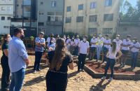 O plantio teve apoio de funcionários da Secretaria de Meio Ambiente, que chegaram cedo para fazer as covas e lavar o estacionamento. Assim que o serviço foi concluído, por volta das 9h, os alunos seguiram para o local e, antes de iniciar o plantio, ouviram explicações da engenheira ambiental Ana Paula Moreira, da Prefeitura, sobre as três espécies que estavam sendo utilizadas.