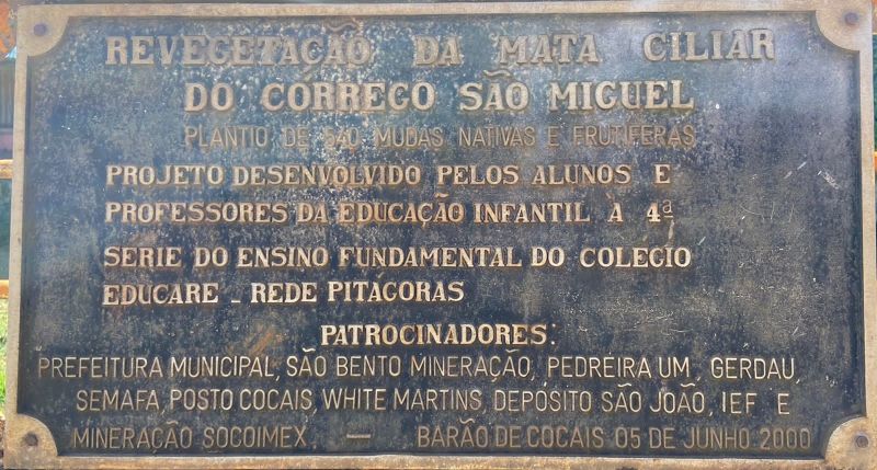 Há quase 22 anos, o Colégio Educare Rede Pitágoras de Barão de Cocais, em parceria com a Prefeitura Municipal e algumas empresas da cidade, desenvolveu um grande projeto de Revegetação da mata ciliar do Córrego São Miguel.